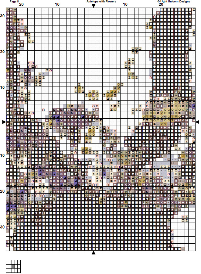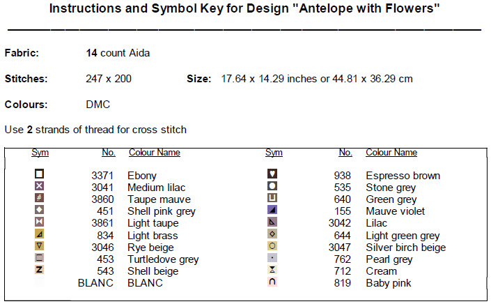 -. Antelope with Flowers Cross Stitch Pattern