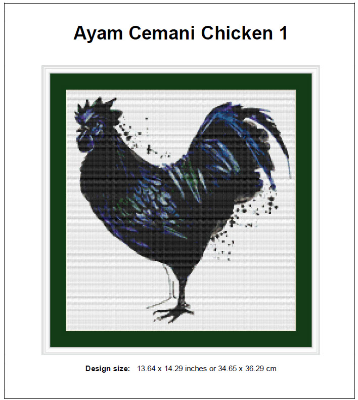 Cross Stitch Patterns – Ayam Cemani Chicken 1  – Instant PDF Download – Ayam Cemani Chicken 1  Cross Stitch Pattern