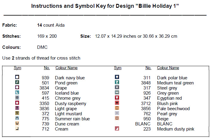 ► This is our Billie Holiday 1 Cross Stitch Pattern – PDF ONLY. NO MATERIAL OR THREADS ARE PROVIDED