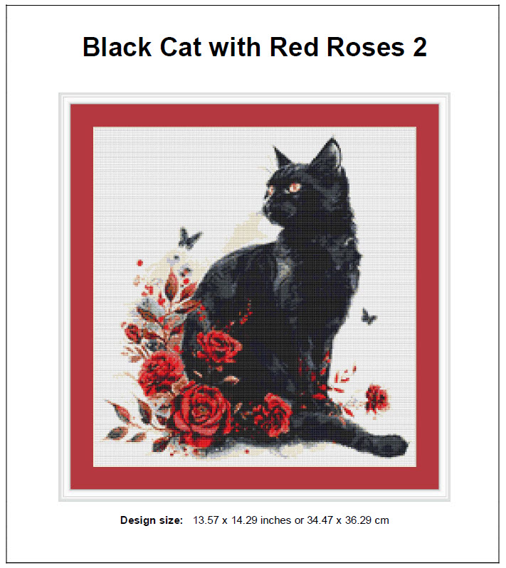 ► This is our Black Cat with Red Roses 2  Cross Stitch Pattern – PDF ONLY. NO MATERIAL OR THREADS ARE PROVIDED