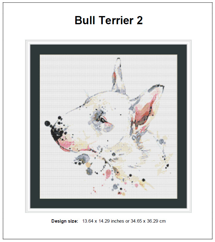 Bull Terrier 2 Cross Stitch Pattern Instant Download PDF- Bull Terrier 2 Watercolor Dog Cross Stitch Pattern
