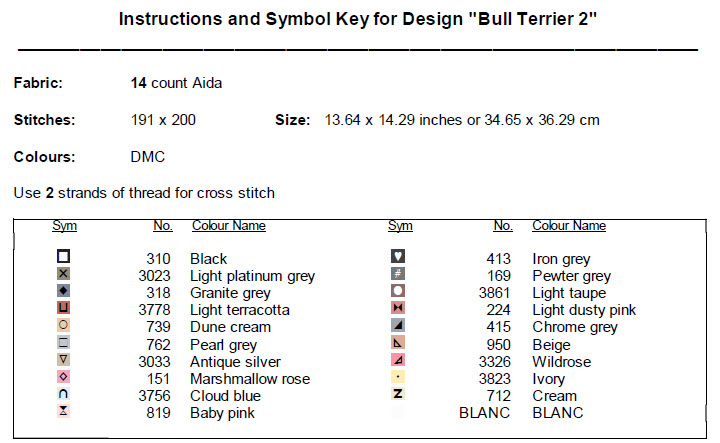 Cross Stitch Patterns – Bull Terrier 2– Instant PDF Download Bull Terrier 2 Cross Stitch Pattern