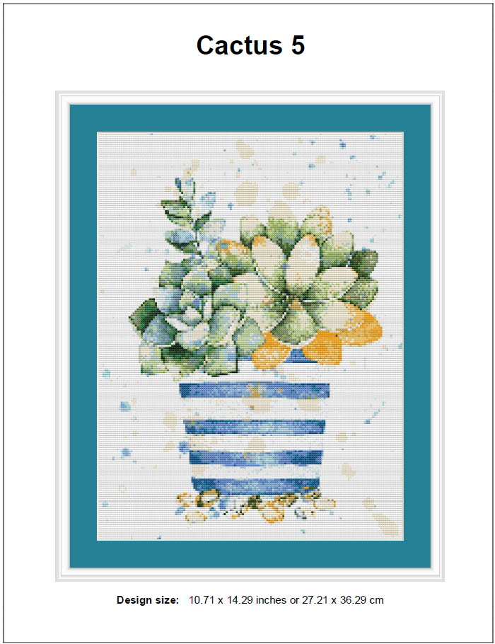Cactus 5 Cross Stitch Pattern Instant Download PDF-Cactus 5 Watercolor Mixed Cross Stitch Pattern