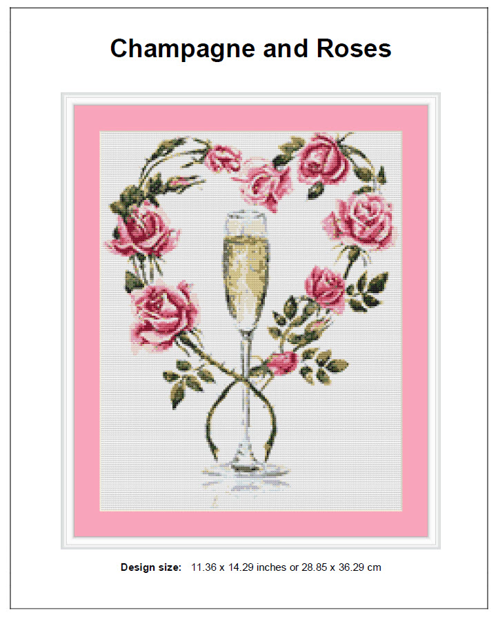 Champagne and Roses Cross Stitch Patterns – Instant PDF Download