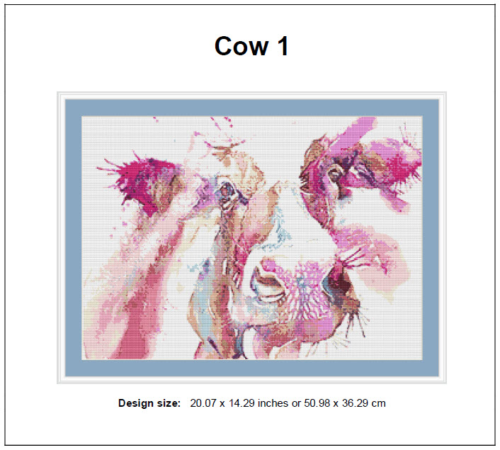 Cow 1-1 Cross Stitch Pattern Instant Download PDF-Cow 1-1 Watercolor Animal Cross Stitch Pattern