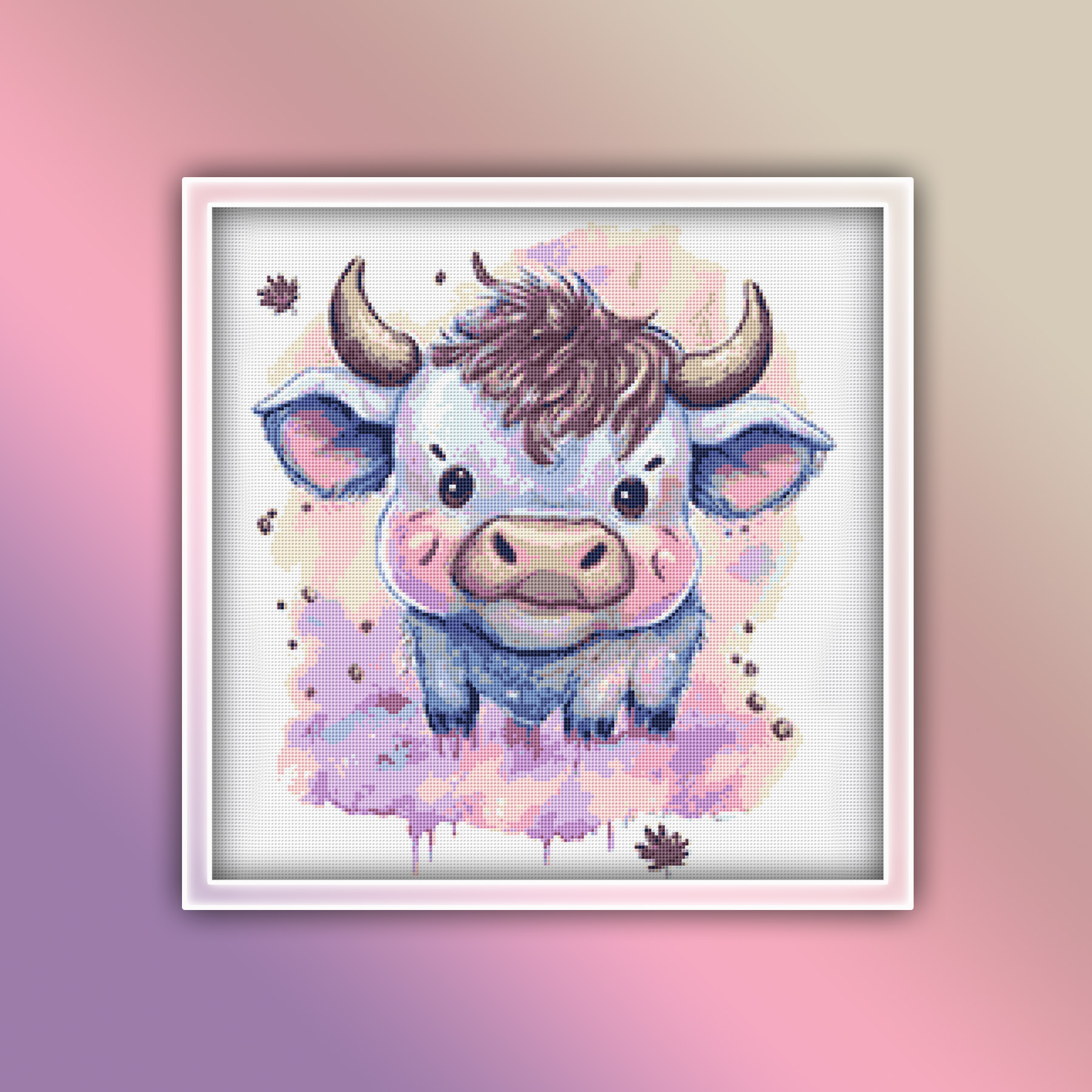 Cow 13 Cross Stitch Pattern Instant Download PDF-Cow 13 Watercolor Animal Cross Stitch Pattern