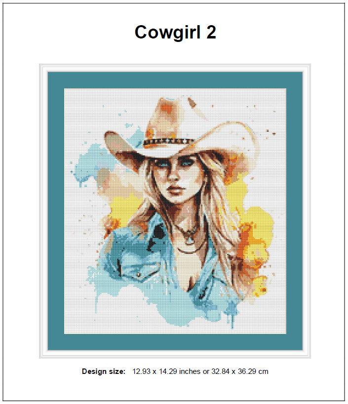 Cowgirl 2 Cross Stitch Pattern Instant Download PDF-Cowgirl 2 Watercolor People Cross Stitch Pattern