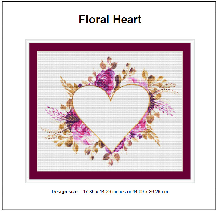 -. Floral Heart Cross Stitch Pattern