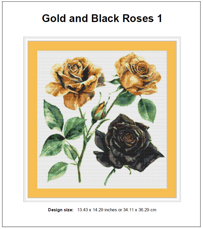 ► This is our Gold and Black Roses 1 Cross Stitch Pattern – PDF ONLY. NO MATERIAL OR THREADS ARE PROVIDED