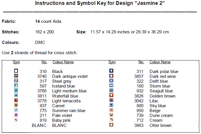 ► This is our Jasmine 2 Cross Stitch Pattern – PDF ONLY. NO MATERIAL OR THREADS ARE PROVIDED