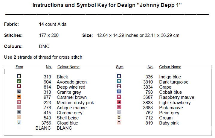 ► This is our Johnny Depp 1 Cross Stitch Pattern – PDF ONLY. NO MATERIAL OR THREADS ARE PROVIDED